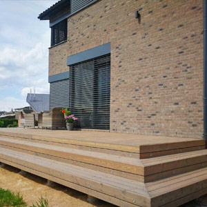 Используя CAMO вы получаете безопасную поверхность террасы и ее эстетичный вид.  Ещё никогда работа с террасой не была такой быстрой и простой. Первая система крепления доски, которая легко и по доступной цене прикрепляет обработанные пиломатериалы из древесины, лиственных пород дерева, кедра, композита или ПВХ непосредственно к основанию, создавая красивую поверхность террасы без крепежа.