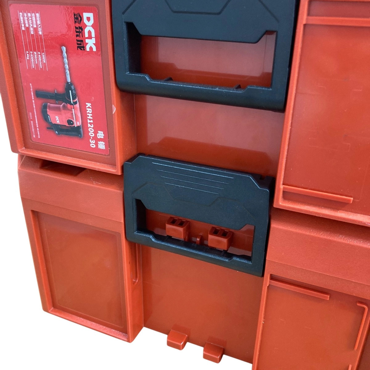Усовершенстврванный ящик от DCK для хранения сетевого и аккумуляторного инструмента. Прочные замки. Большая вместительность. Две ручки.