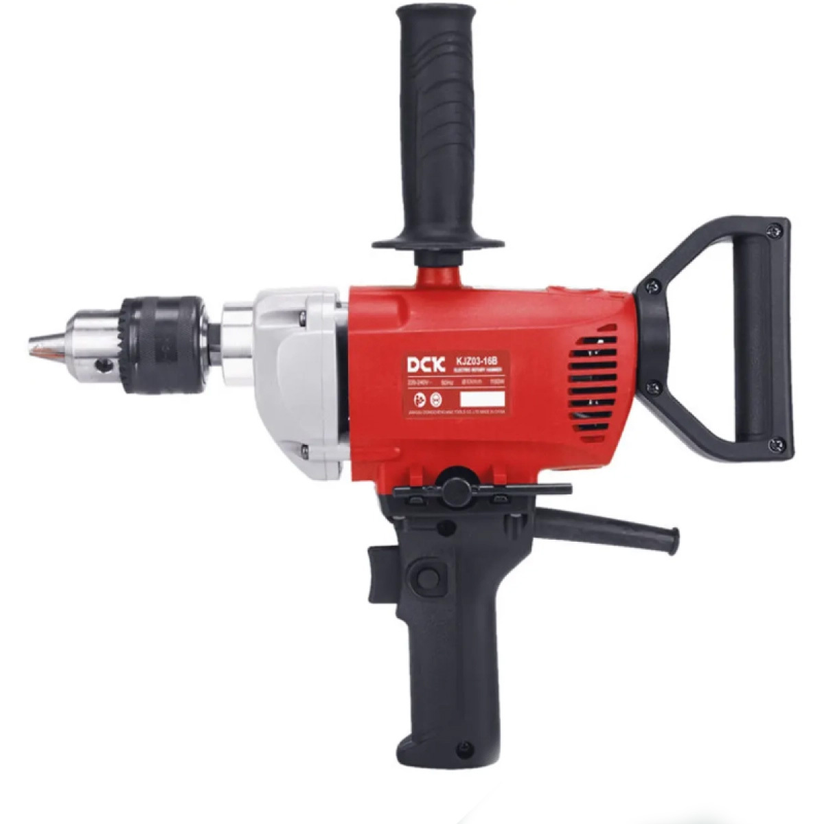 Низкооборотистая дрель DCK KJZ03-16B -  применяется для сверления больших отверстий сверлом Левиса. Мощность в 1010 Вт и трехкулачковый патрон диаметром до 16 мм с ключевой затяжкой  позволяет работать сверлами диаметром до 36 мм, что достаточно для большинства строительных задач деревянного домостроения. Низкая скорость вращения (620 об/мин) позволяет точно контролировать процесс работы, уберегает от травм и упрощает удаление стружки из отверстия в процессе сверления. Удобная D-образная рукоятка вращающаяся на 360 градусов, обеспечивает комфорт при использовании инструмента.