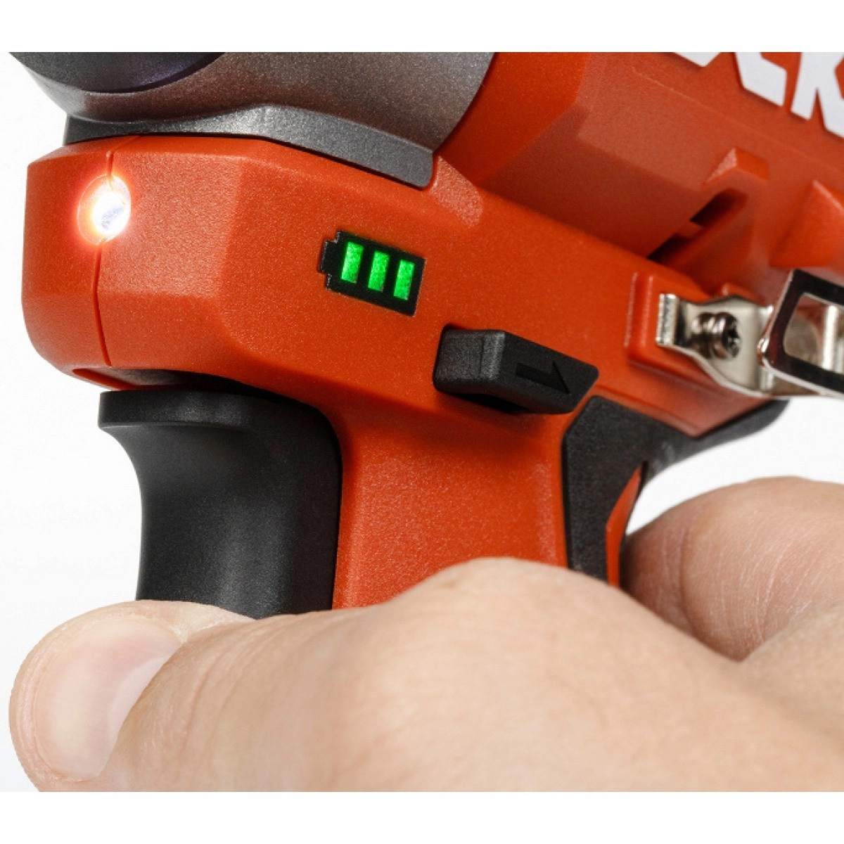 • Красный индикатор: высокая скорость вращения (до 3300 об/мин), макс. число ударов — 4000 в минуту. Подходит для операций, где требуются высокие усилия и скорость.